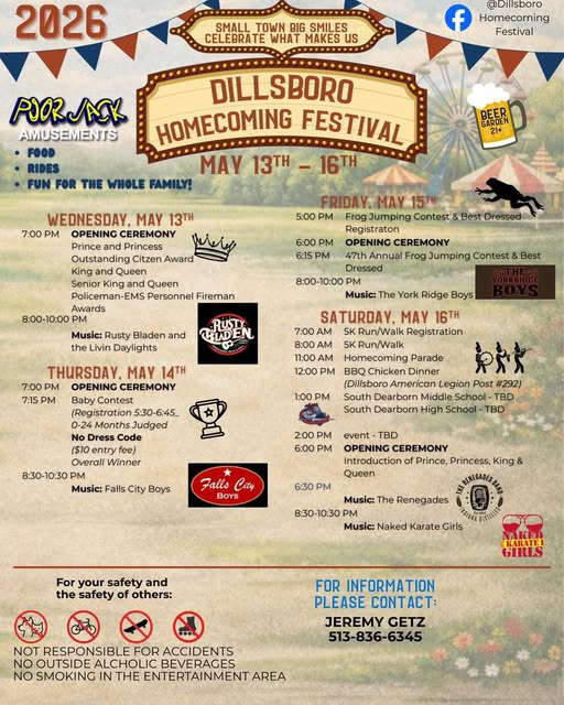 (Dillsboro, Ind.) – The Dillsboro Homecoming Festival schedule is out.