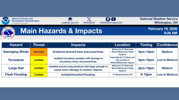 (Wilmington, Oh.) - Showers and thunderstorms are expected this afternoon and evening.