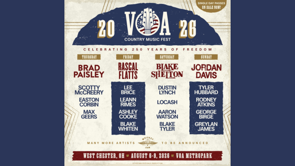 Headliners Brad Paisley, Rascal Flatts, Blake Shelton, and Jordan Davis join LeAnn Rimes, Scotty McCreery, Tyler Hubbard, Lee Brice, Dustin Lynch, Rodney Atkins, Ashley Cooke, Easton Corbin, and many others in this year’s star-studded lineup at the Voice of America MetroPark in West Chester, Ohio, Thursday, Aug. 6 - Sunday, Aug. 9, 2026 - with more artist announcements on the way.