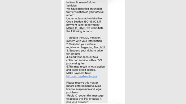 These fraudulent messages claim to represent the BMV and include suspicious links.